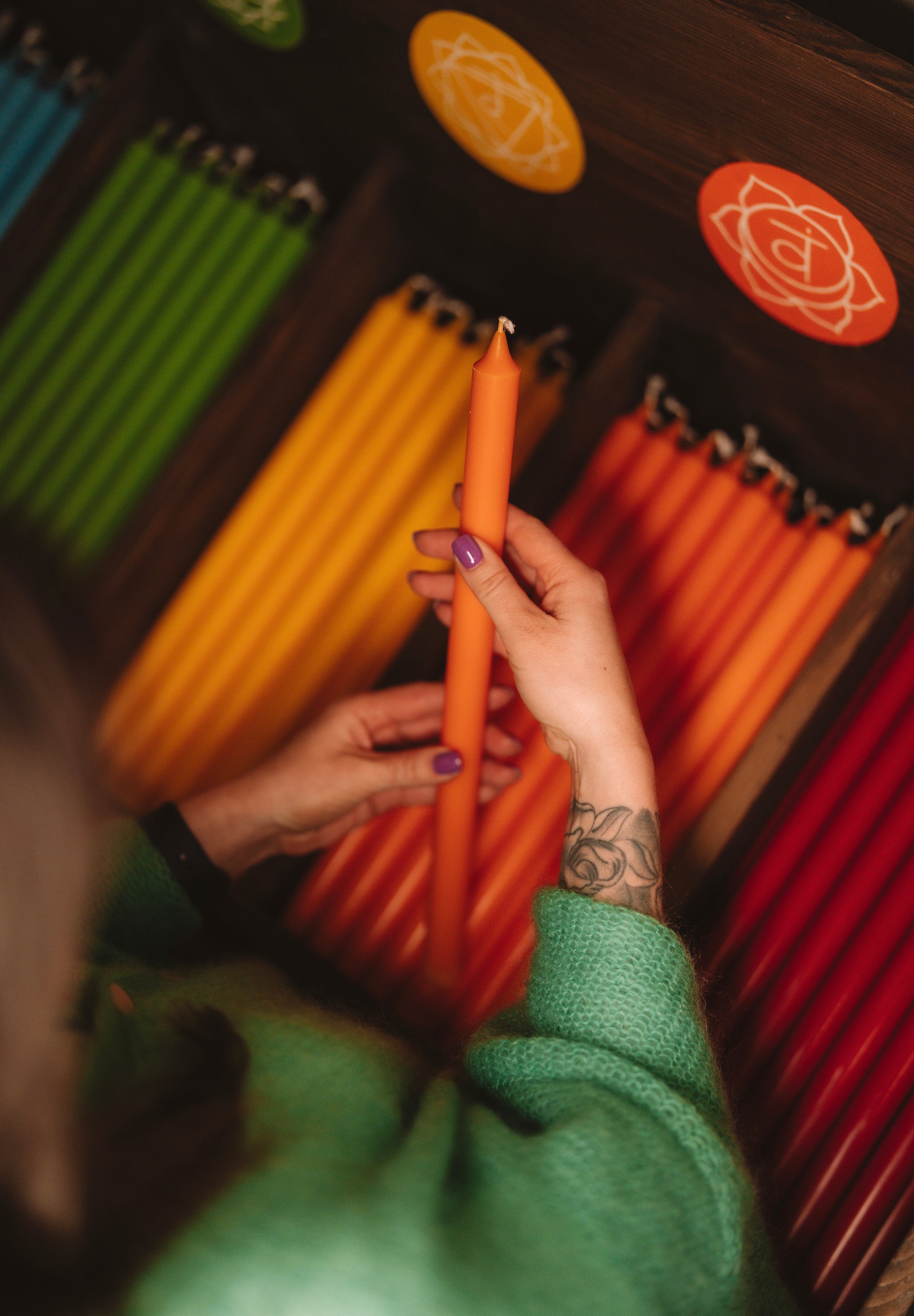 Chakra candles are made from 100% styrene with the EKO SWAN label, made from RSPO certified palm waxes.