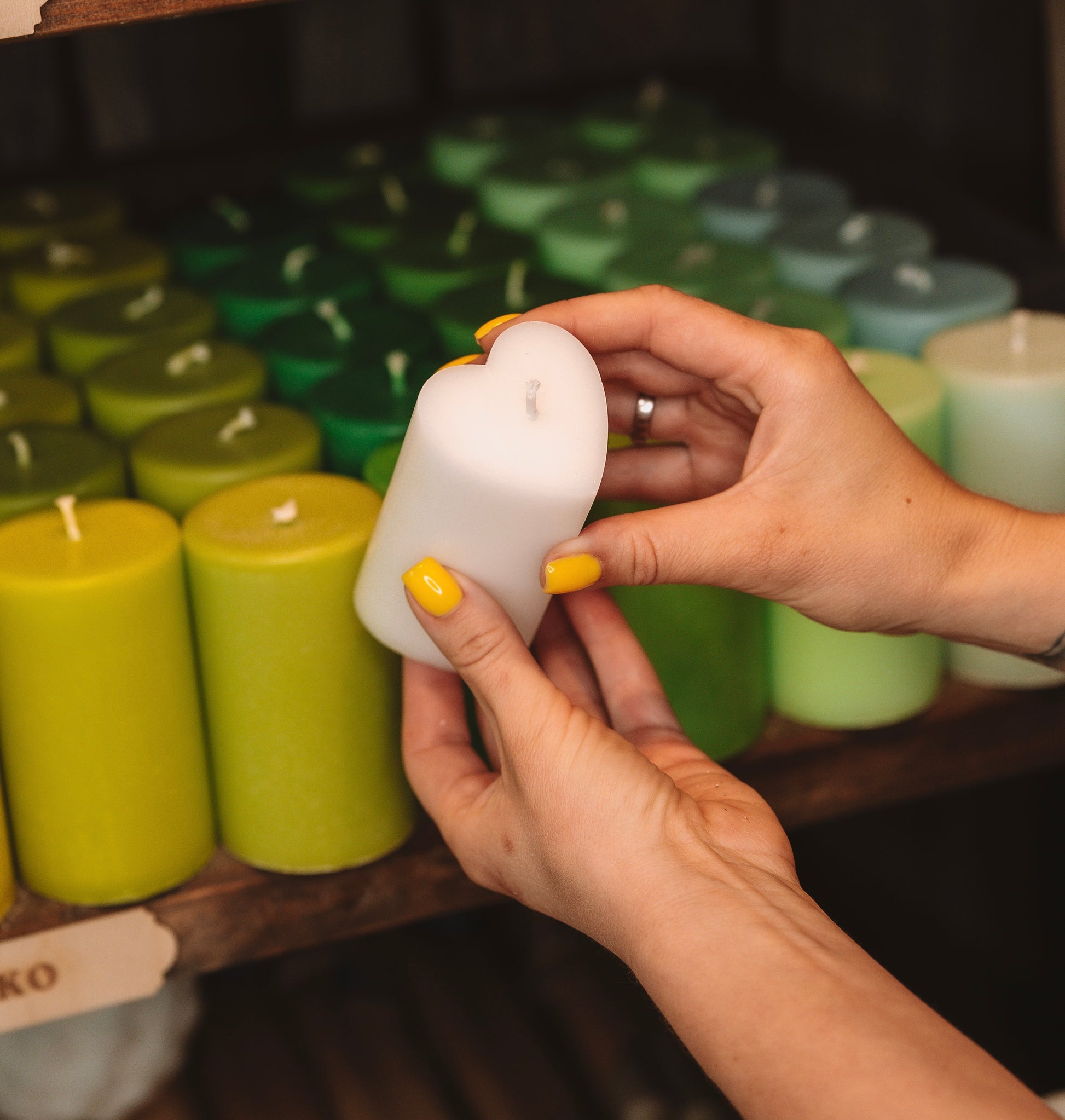 White decorative figurine in the shape of a heart. Stearin candles are an ecological and natural product, distinguished by their production process and biodegradable composition. Stearin is extracted from vegetable oils and provides a longer and cleaner burning experience compared to other candles. By choosing stearin candles you are making an ecological and environmentally friendly choice, supporting a natural way of life and reducing negative environmental impacts.