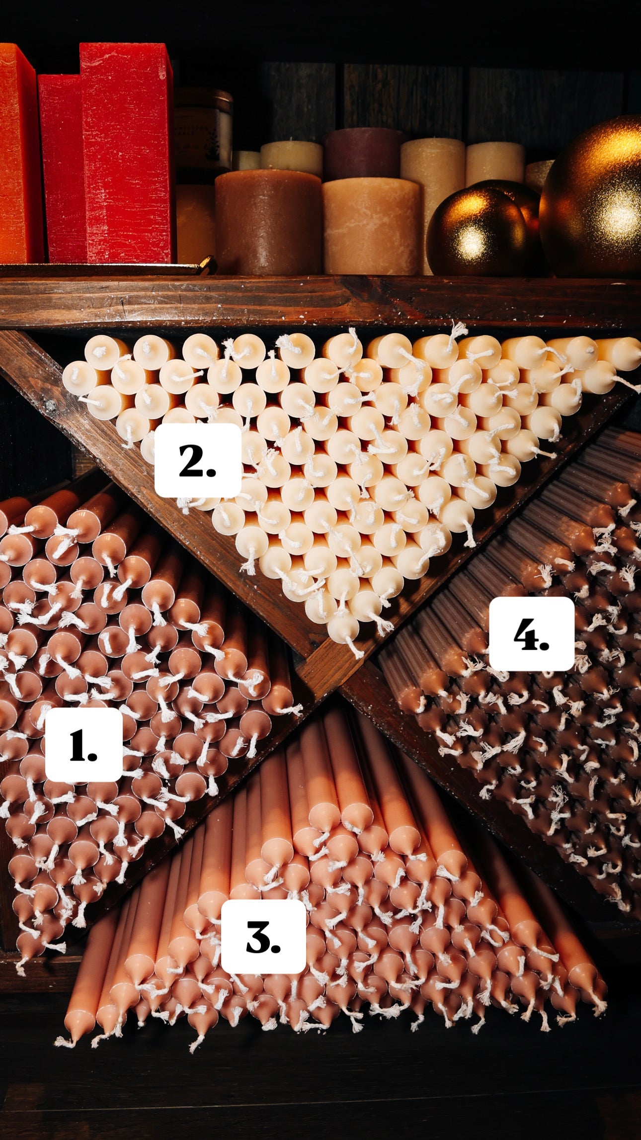Lūdzu, ņemiet vērā, ka sveču krāsa reālajā dzīvē var nedaudz atšķirties no attēlos redzamās, atkarībā no ekrāna iestatījumiem, apgaismojuma un foto apstrādes