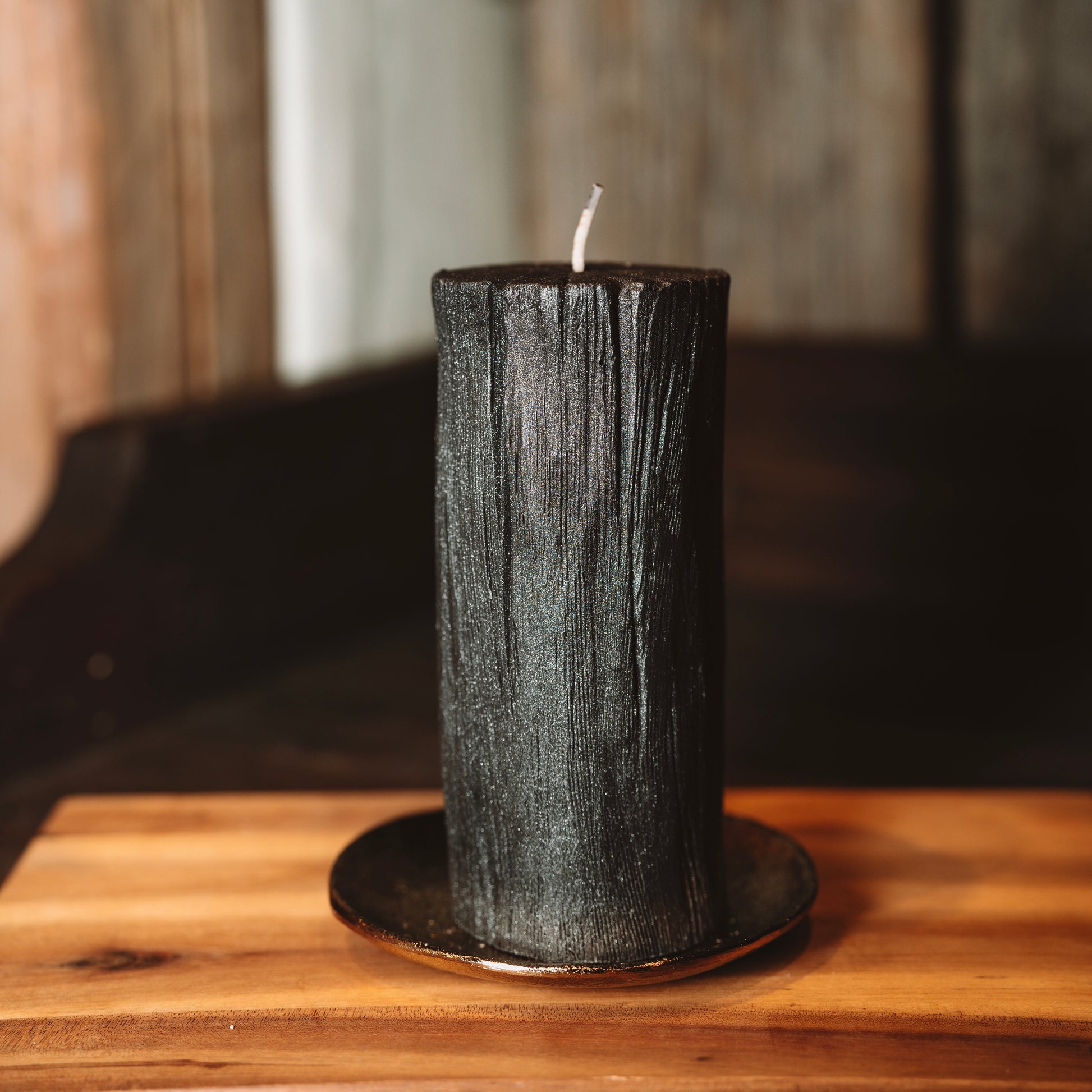 A black decorative design candle in the form of charcoal, which will perfectly fit and complement the interior of any room.