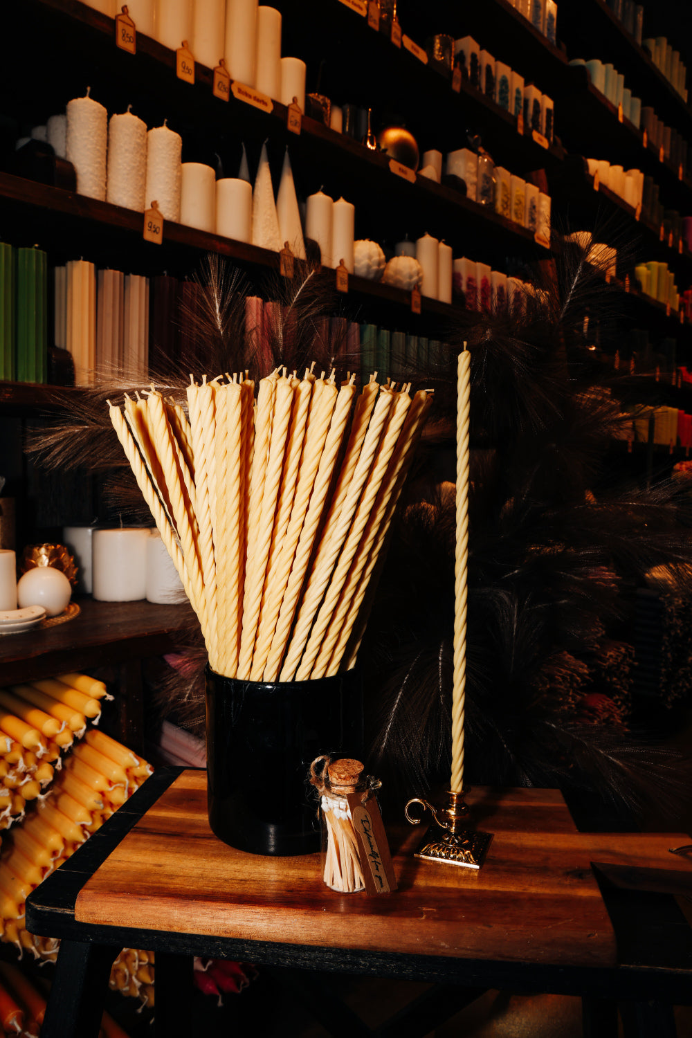 Šīs svecītes izceļas ar savu dabisko krāsu, maigo medus aromātu un siltu, mierīgu liesmu. Dedzinot tās rada mājīgu noskaņu un piepilda telpu ar dabisku, nomierinošu sajūtu.
