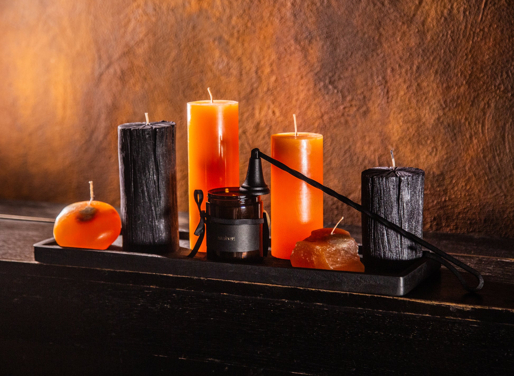 Large wooden candle tray in black color, which will serve as both a practical and a decorative element at the same time, perfectly fitting into the interior of any room.