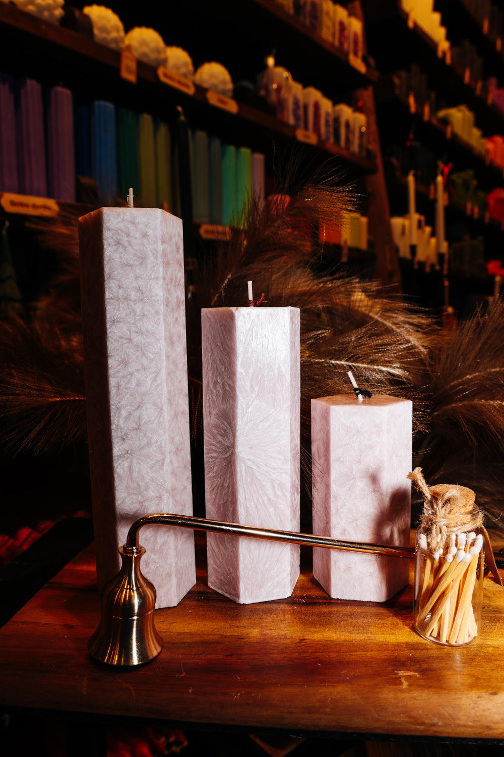 Kristālstearīns ir augstas kvalitātes ekoloģisks materiāls, kas nodrošina tīru un vienmērīgu degšanu, savukārt degšanas laikā veidojas raksturīga, smalka kristāliska mežģīņu sieniņa, kas piešķir svecei izsmalcinātu un svinīgu izskatu.