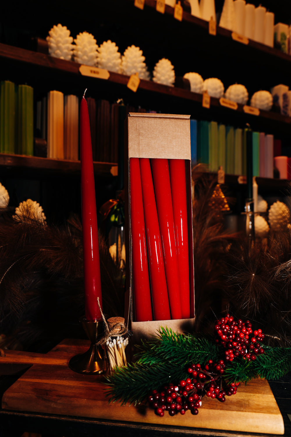 Izsmalcinātas Lux klases sarkanas sveces ar augstas kvalitātes laku, kas piešķir elegantu spīdumu un greznu izskatu jebkuram interjeram. Sveces ir ražotas Latvijā, ievērojot augstus kvalitātes standartus.
