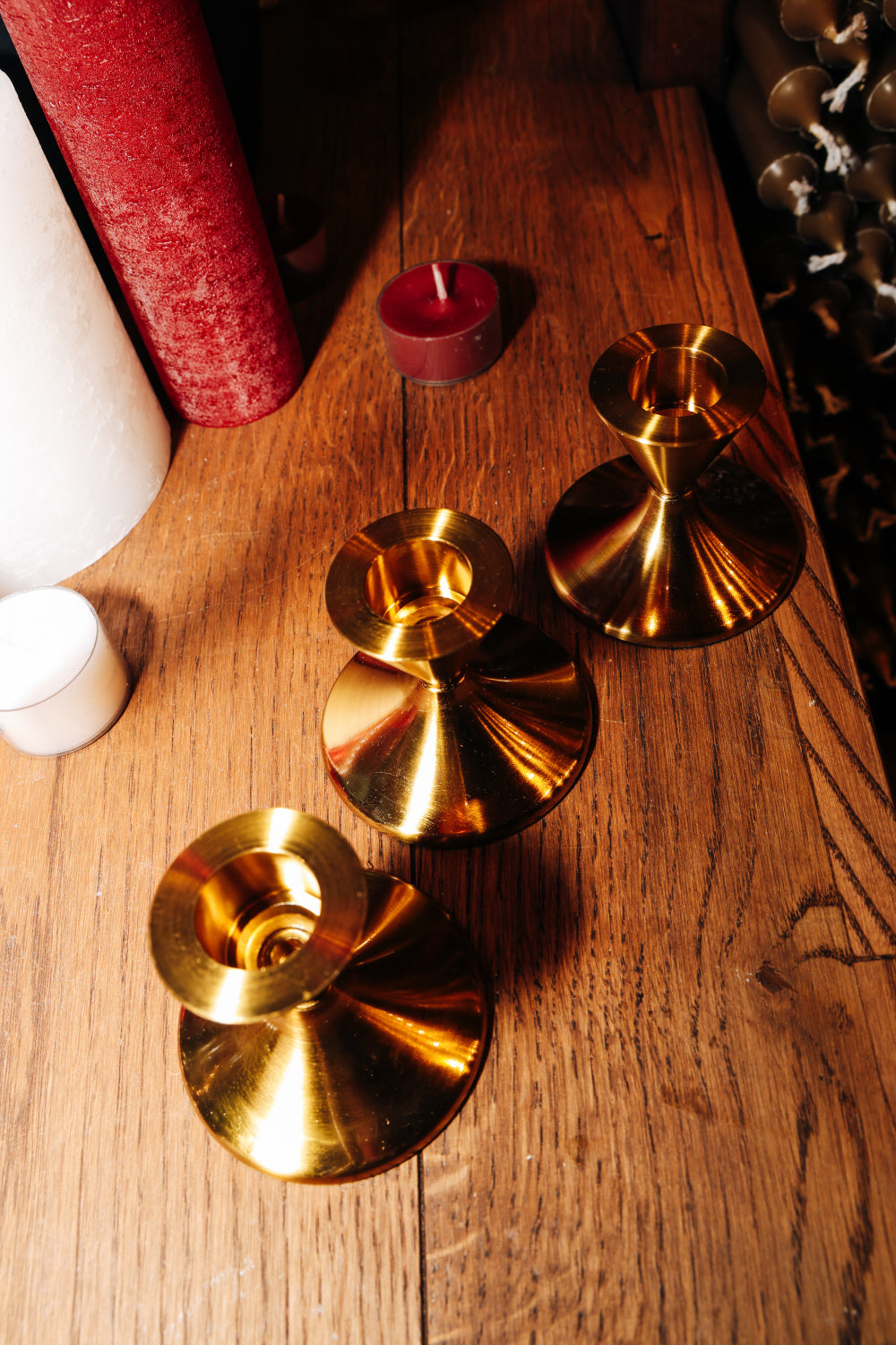 Ienesiet eleganci un siltumu savās mājās ar šo zelta metāla konusveida svečturi. Tā moderns un minimālistisks dizains lieliski papildinās jebkuru interjeru, radot svinīgu noskaņu gan ikdienā, gan svētkos.